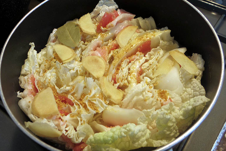 白菜の芯が柔らかくなるまで煮る
