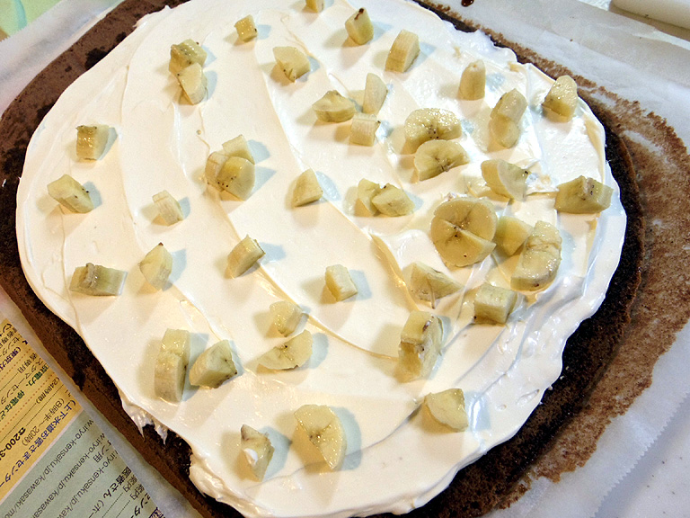 ココア生地にコーヒーシロップを塗り