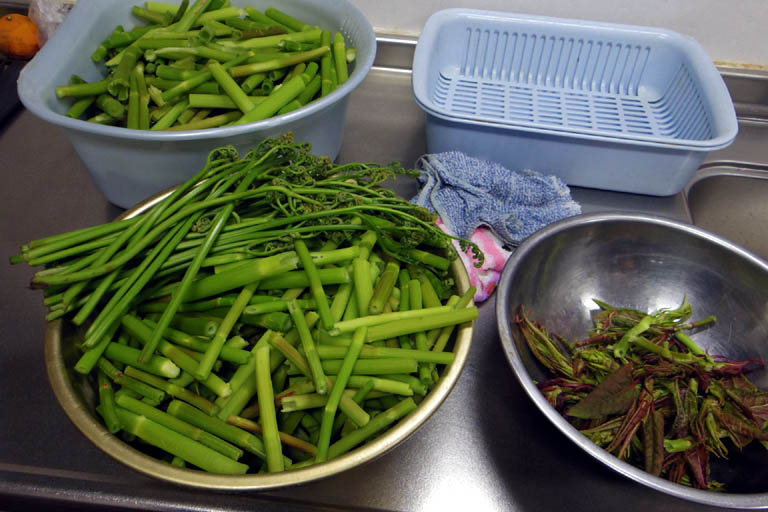 23:00~イタドリ皮むき