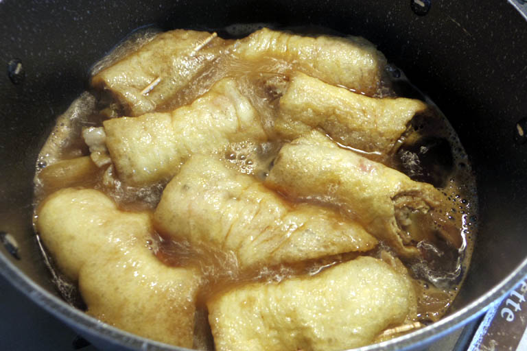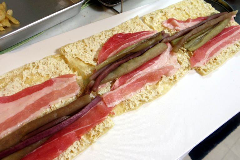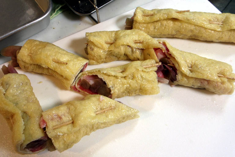 楊枝の代わりに、硬いパスタで縫うように止めれば、