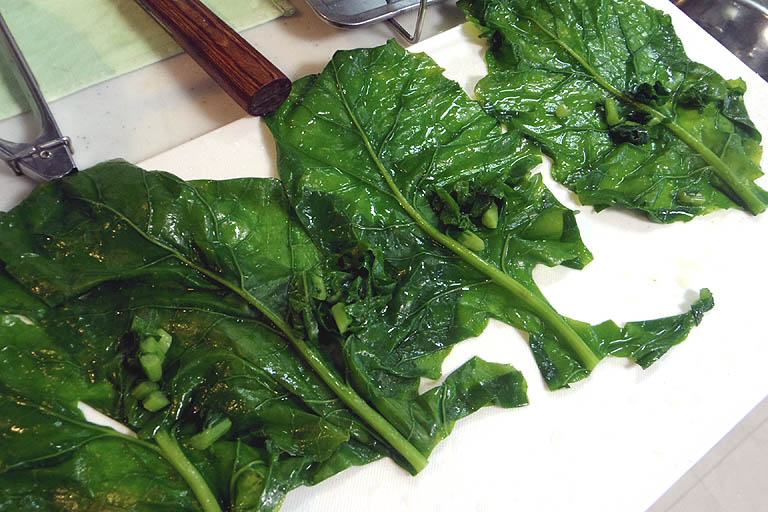ほうれん草より長めに茹でてねと説明