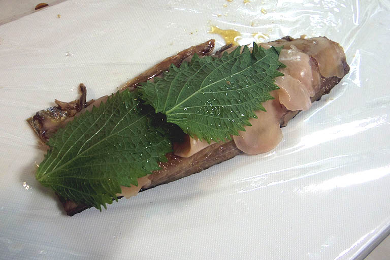 ガリのショウガとシソの香りで