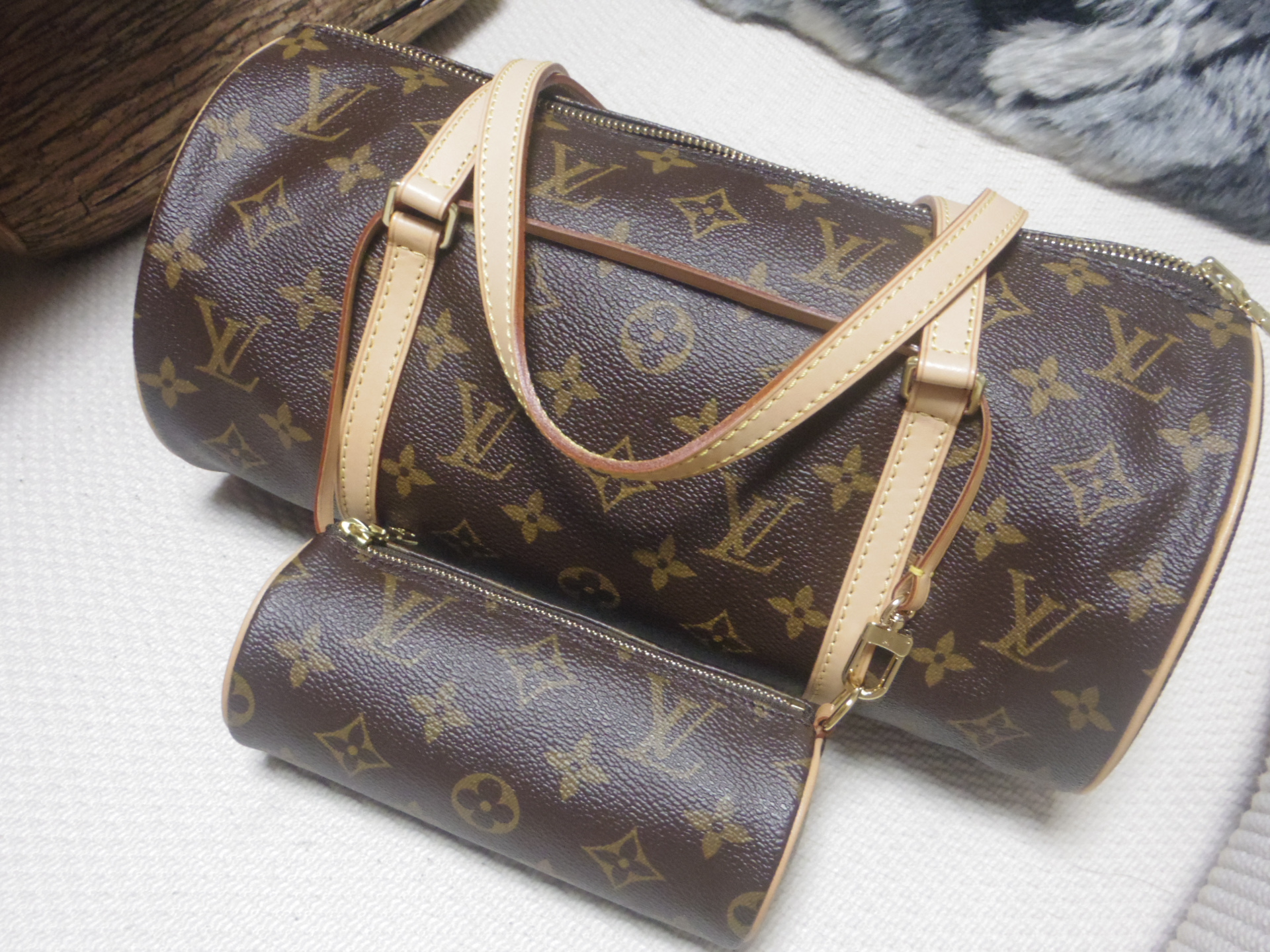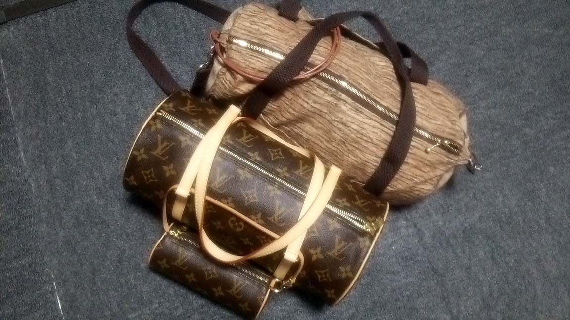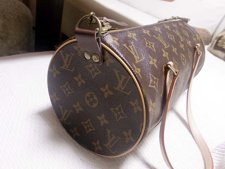 おNEWのヴィトンに千枚通しでブスっと穴を開け