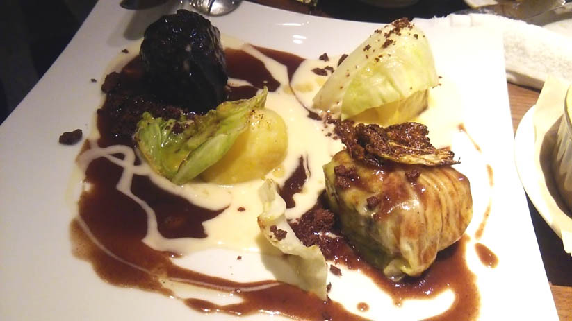 ビーフの塊をキャベツで包んだ
