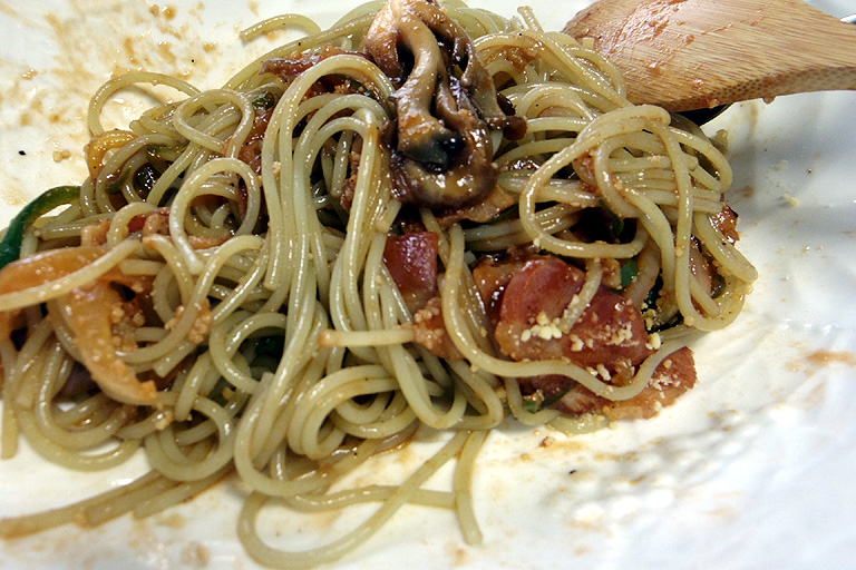 トマトソースの赤を打ち消す黒!