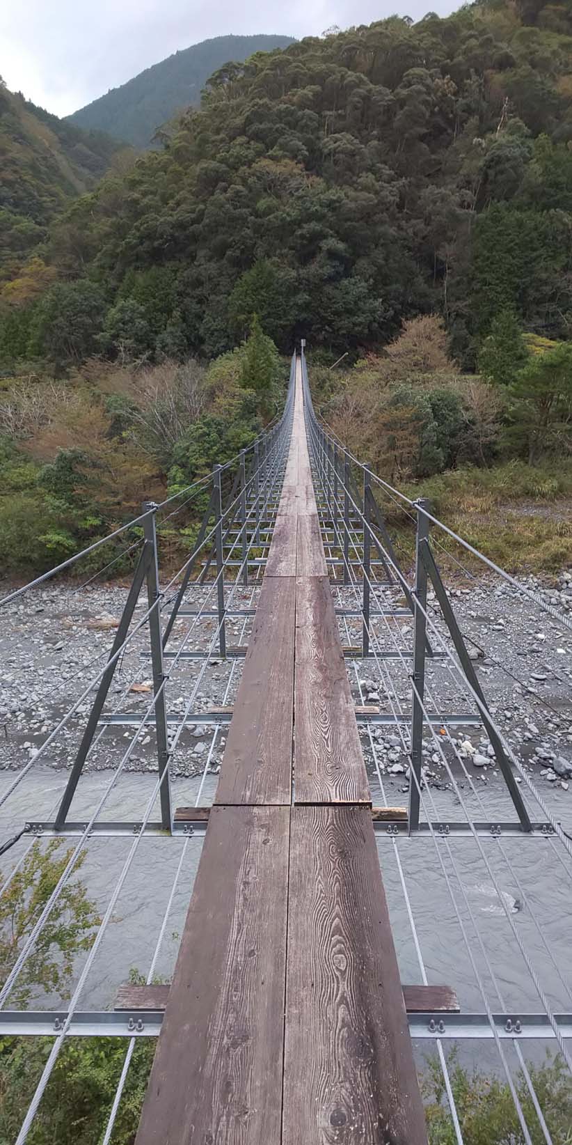 人専用の細くて長い吊り橋はよく揺れて高い!