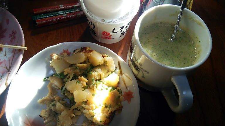 御坂峠を越えて閉店間際の八百屋に立ち寄り